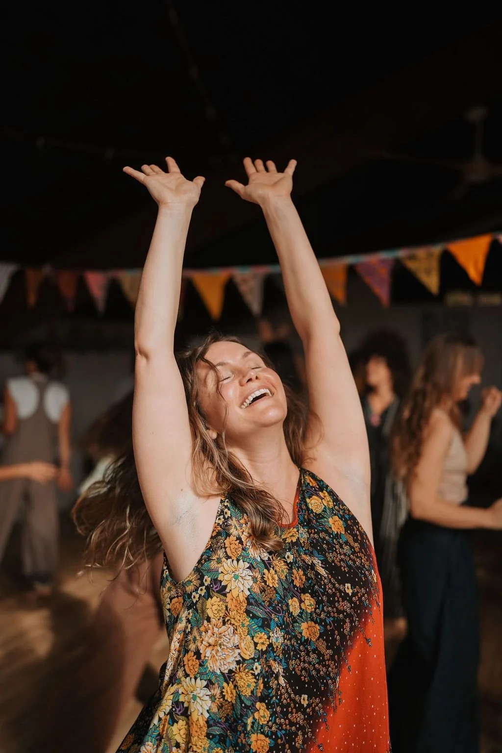 Her work is grounded in the understanding that the body must feel safe in order to let go. Using the 5 Rhythms framework, she guides participants through stress completion and embodied release in a way that is grounded, non-performative, and accessible.
